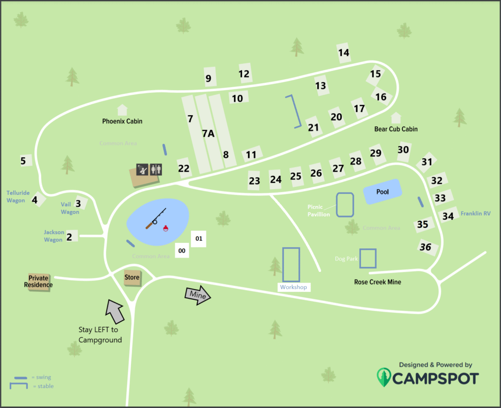 Relax in our Welcome Center Lounge, featuring cozy seating, a guest laundry, and free Wi-Fi to keep you connected. The Bathhouse is clean and conveniently located, with restrooms, showers, and vending machines for your convenience. Gather at our Pavilion and Grill Area, perfect for meals and socializing. Take a dip in the Swimming Pool, or enjoy some fresh air and outdoor games our spacious Green space. Cast a line in our Fishing Pond (bass, brim and catfish). Whether you’re here to relax or explore, our campground has everything you need for a memorable stay.